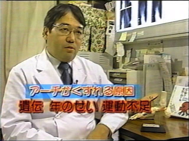 TBSテレビ ニュースの森「爪のトラブル最新治療法」町田がビデオ出演しました。1999年11月 午前10時30分 日本テレビ 峰竜太のホンの昼メシ前 常識クイズ テーマ健康 町田がビデオ出演しました。 Q「扁平足は足が遅い OかXか?」 A「扁平足が問題になる事はほとんどありません。」「扁平足で疲れ易いこともありますが、極めてマレです。」 1999年11月25日