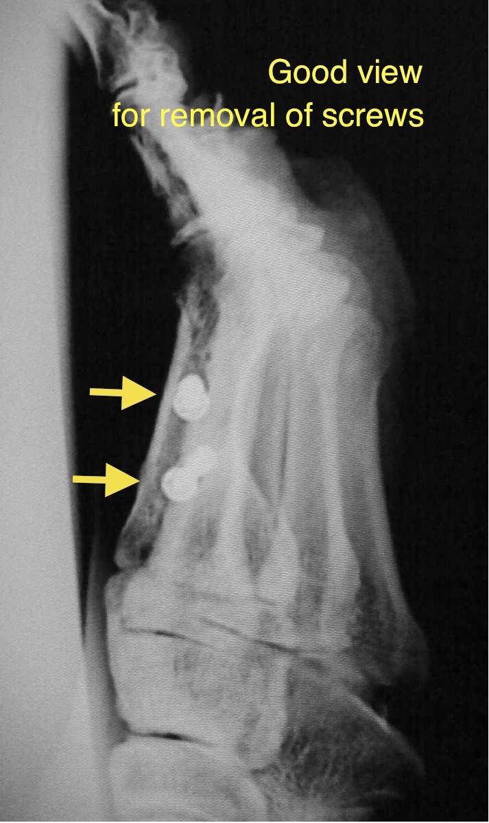 スクリュー抜去の時に透視下でスクリューを横から見て行うと難しくなる。